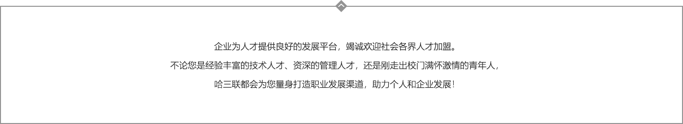 二、公司招聘職位發布渠道有:哈爾濱三聯藥業股份有限公司官網、智聯招聘、Boss直聘、獵聘網。請求職者注意核對企業信息、職位信息、聯系方式等。哈三聯藥業對非官方公布招聘網站刊登的招聘信息不負法律責任。特此說明。