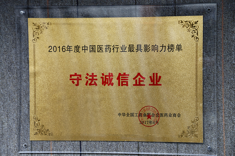 由中華全國工商業(yè)聯(lián)合會醫(yī)藥業(yè)商會舉辦的“2016年度中國醫(yī)藥行業(yè)最具影響力榜單”征評活動于6月20日揭曉,我公司在此次評選活動中榮獲“2016年度中國醫(yī)藥行業(yè)守法誠信企業(yè)”榮譽稱號。