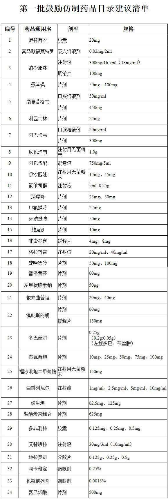 6月20日,國家衛生健康委員會官網對首批鼓勵仿制藥品目錄建議清單予以公示。