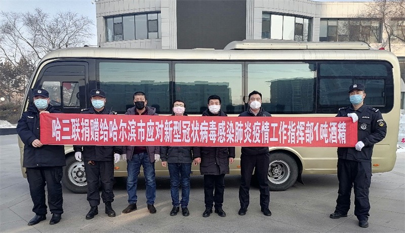 繼1月30日捐助武漢后,哈三聯積極籌措防疫物資,向哈爾濱市應對新型冠狀病毒感染肺炎疫情工作指揮部、哈爾濱市第一醫院、哈爾濱新區利民生物醫藥園區服務有限公司、哈爾濱松北區疫情工作指揮部、鶴崗市人民醫院、哈爾濱醫科大學附屬第二人民醫院急診部共計捐贈醫用口罩11000個、醫用酒精4噸、醫用手套2000付、隔離服100套。