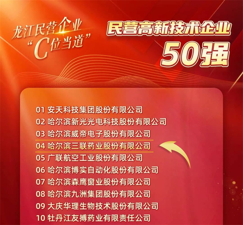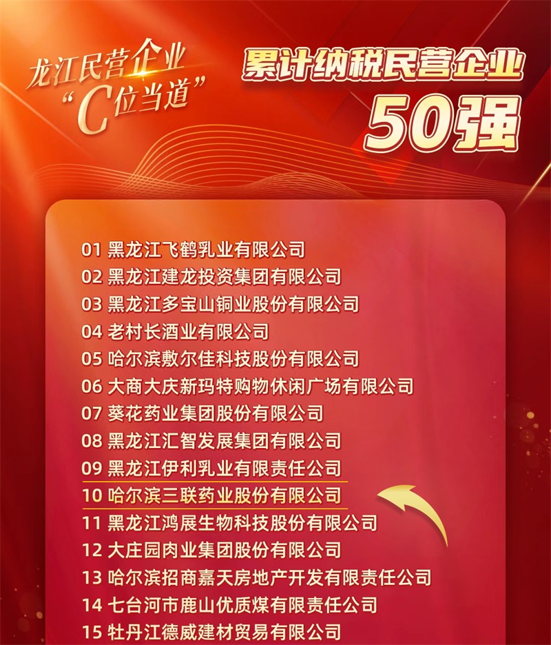 哈三聯(lián)作為一家民營上市企業(yè),多年來始終立足服務(wù)區(qū)域經(jīng)濟(jì)與龍江社會發(fā)展,誠信守法經(jīng)營、履行社會職責(zé),被國家稅務(wù)總局納入“全國千戶集團(tuán)總部企業(yè)”,連續(xù)四年入選“中國化藥企業(yè)TOP100榜單”。企業(yè)將以此次民營經(jīng)濟(jì)發(fā)展大會為契機(jī),在實現(xiàn)自身高質(zhì)量發(fā)展的同時,為開創(chuàng)我省民營經(jīng)濟(jì)新局面貢獻(xiàn)新力量。