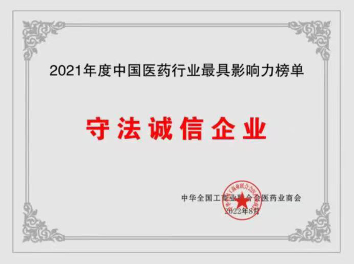 哈三聯被授予中國醫藥行業守法誠信企業榮譽稱號