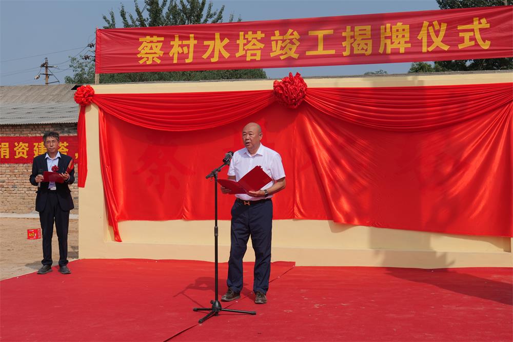 哈三聯(lián)董事長兼總裁秦劍飛代表哈三聯(lián)及哈三聯(lián)慈善基金會致辭。他強調(diào),蔡村是養(yǎng)育他的土地,在外多年,他始終銘記回報家鄉(xiāng)的責(zé)任與使命。此次捐資興建水塔,不僅是為了讓鄉(xiāng)鄰百姓能有安全、穩(wěn)定、潔凈的水源,更是為了表達(dá)在外創(chuàng)業(yè)者對家鄉(xiāng)的深情厚誼,希望未來家鄉(xiāng)能更加繁榮、和諧。