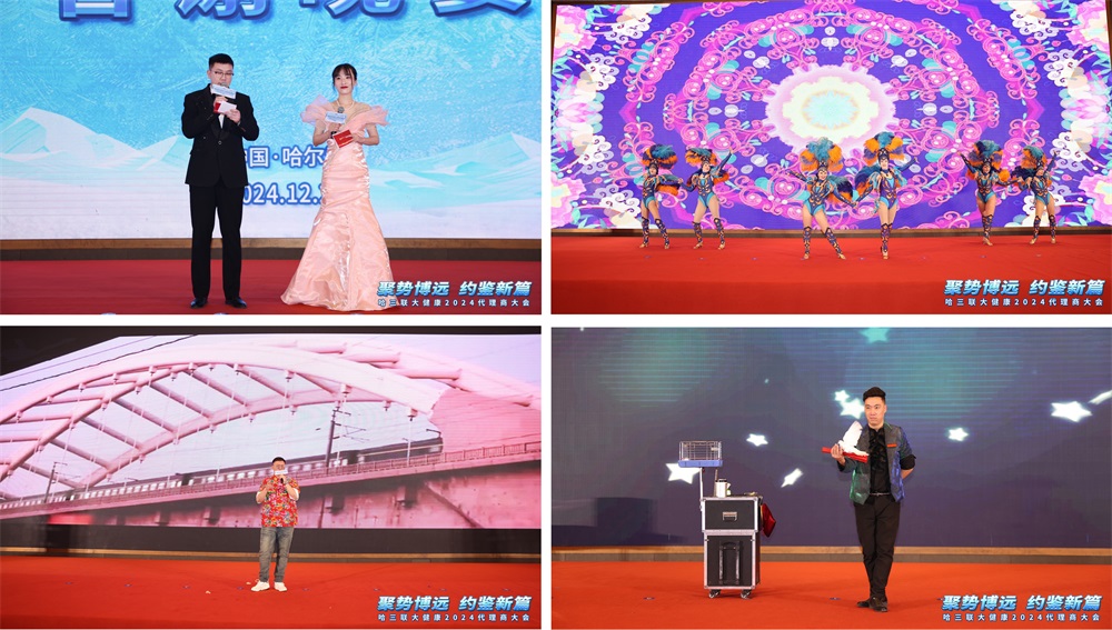 23日晚,哈三聯(lián)大健康2024代理商答謝晚宴如約而至。異域風(fēng)情的迎賓舞,冰雪純粹的歌聲,高潮迭起的魔術(shù)令晚宴融洽而熱烈。