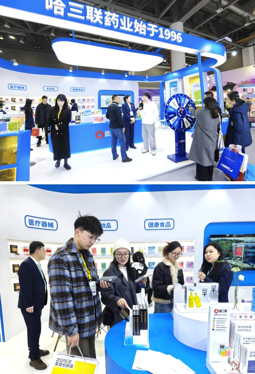 展會上,哈三聯“械+妝”多產品系列矩陣,為用戶提供從術前護理、術后修護到日常持續護理的全套護膚方案,吸引了專業買手、渠道代理商以及多個客戶群體的咨詢洽談。好好系列納米乳化飲品則契合了消費者對“天然成分”的健康訴求,滿足了市場對"輕養生"產品的多元化需求,突破時間、地點和飲用形式上的局限,打造出成分天然、易吸收、便攜即飲的功能性飲品。同時,現場通過互動活動、產品體驗等多種形式,吸引大家走進哈三聯,了解哈三聯大健康。