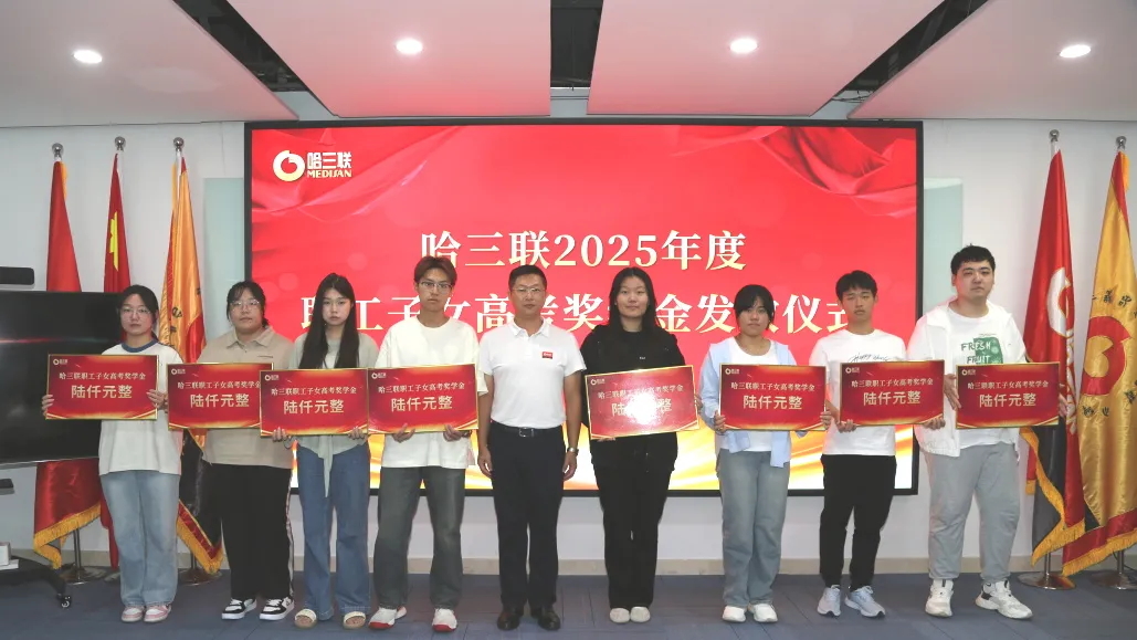 8月22日下午,哈三聯工會組織舉行2025年度職工子女高考獎學金發放儀式,本年度共有23名職工子女獲得獎學金,共計15余萬元,儀式由行政管理中心黨群工作總監、工會副主席殷洪玉主持。哈三聯副總裁、工會主席梁延飛出席頒獎儀式并致辭。