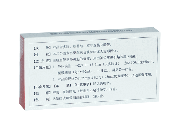產(chǎn)品中心產(chǎn)品中心神經(jīng)系統(tǒng)類(lèi)0451-51705160公司地址:黑龍江省哈爾濱市利民經(jīng)濟(jì)開(kāi)發(fā)區(qū)北京路米氮平片【藥品名稱(chēng)】米氮平片【商品名】米爾寧 【批準(zhǔn)文號(hào)】國(guó)藥準(zhǔn)字H200607...【包裝規(guī)格】15mg×20片/盒、...【適應(yīng)癥】用于抑郁癥的治...注射用吡拉西坦【藥品名稱(chēng)】注射用吡拉西坦【商品名】易汀【批準(zhǔn)文號(hào)】國(guó)藥準(zhǔn)字H200503...【包裝規(guī)格】2.0g×4支/盒【適應(yīng)癥】適用于急、慢性...奧拉西坦注射液【藥品名稱(chēng)】奧拉西坦注射液【商品名】歐蘭同【批準(zhǔn)文號(hào)】國(guó)藥準(zhǔn)字H200600...【包裝規(guī)格】玻璃安瓿:5ml:1g...【適應(yīng)癥】用于腦損傷及引...注射用甲鈷胺【藥品名稱(chēng)】注射用甲鈷胺【商品名】唐信【批準(zhǔn)文號(hào)】國(guó)藥準(zhǔn)字H200503...【包裝規(guī)格】低硼硅玻璃管制...【適應(yīng)癥】1、周?chē)窠?jīng)病。...甲鈷胺注射液【藥品名稱(chēng)】甲鈷胺注射液【商品名】 帕克萊【批準(zhǔn)文號(hào)】國(guó)藥準(zhǔn)字H200446...【包裝規(guī)格】1ml:0.5mg×1支...【適應(yīng)癥】1、用于周?chē)窠?jīng)...注射用腺苷鈷胺【藥品名稱(chēng)】注射用腺苷鈷胺【批準(zhǔn)文號(hào)】國(guó)藥準(zhǔn)字H200459...【包裝規(guī)格】1.0mg×5支/盒、...【英文名】Cobamamide for ...【適應(yīng)癥】用于巨幼細(xì)胞貧...注射用肌氨肽苷【藥品名稱(chēng)】注射用肌氨肽苷【商品名】萬(wàn)汀【批準(zhǔn)文號(hào)】國(guó)藥準(zhǔn)字H200510...【包裝規(guī)格】多肽8.75mg與次...【適應(yīng)癥】由腦血管意外引...注射用長(zhǎng)春西汀【藥品名稱(chēng)】注射用長(zhǎng)春西汀【商品名】百銳得【批準(zhǔn)文號(hào)】國(guó)藥準(zhǔn)字H200311...【包裝規(guī)格】10mg×5瓶/盒、 ...【適應(yīng)癥】改善腦梗死后遺...甘露醇注射液【藥品名稱(chēng)】甘露醇注射液【批準(zhǔn)文號(hào)】國(guó)藥準(zhǔn)字H230206...【包裝規(guī)格】250ml:50g/瓶 【英文名】Mannitol Inject...【適應(yīng)癥】1、組織脫水藥。...